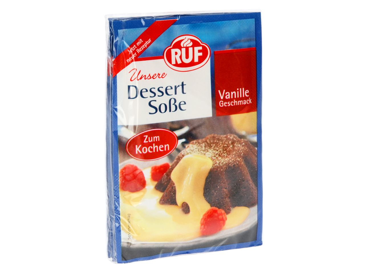 Schon Großmutter wusste: erst eine gelungene Soße macht das Dessert perfekt. Unsere köstliche Vanillesoße mit dem duftenden Aroma feinster Vanille schmeckt köstlich zu Roter Grütze, Schokopudding, Apfelstrudel und vielem mehr. Einfach mit 500 ml kochender Milch angerührt, setzen Sie jedem Dessert eine vanillige Krone auf. Je nach Geschmack kann unsere Dessertsoße warm oder kalt serviert werden.